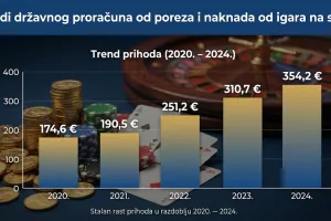 Podaci Porezne uprave jasno ilustriraju razmjere tržišne ekspanzije koja je prethodila novim restrikcijama. U razdoblju od 2020. do 2024. godine, u državni proračun je od poreza i naknada od igara na sreću ušlo ukupno 1,28 milijardi eura. Analiza po godinama ukazuje na trend snažnog rasta koji nije usporila ni globalna ekonomska nestabilnost. Prihodi državnog proračuna od poreza i naknada od igara na sreću bilježe snažan i kontinuiran rast, penjući se sa 174,6 milijuna eura u 2020. godini na 190,5 milijuna u 2021., nakon čega slijedi značajan skok na 251,2 milijuna u 2022., 310,7 milijuna u 2023., te konačno na 354,2 milijuna eura u 2024. godini.