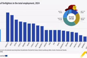 Prema najnovijim podacima Eurostata, u 2024. godini u Europskoj uniji radilo je 390.600 profesionalnih vatrogasaca, što čini 0,19 posto ukupnog zaposlenja. Riječ je o rastu od 28.200 ljudi u odnosu na prethodnu godinu, što govori o pojačanom interesu i potrebi za jačanjem vatrogasnih službi diljem Europe.