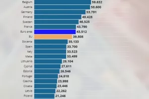 Odmah ispod su zemlje koje mnogima zvuče kao 'zlatna sredina' ali su i dalje bitno iznad EU prosjeka. To su Finska, koja je na 49.428 eura, i Švedska na 46.525. Nešto malo iznad prosjeka EU-a je i Francuska s 43.790 eura godišnje.