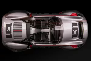 Sa svojim purističkim smanjenim kokpitom, karakterističnim rešetkama hladnjaka iznad središnje postavljenog motora, crvenim grafičkim naglascima i naznakama bočnih krilca na stražnjem dijelu vozila, kompaktni Porsche Vision Spyder (2019.; tvrdi model u mjerilu 1:1) podsjeća na Porsche 550-1500 RS Spyder iz 1954. god..