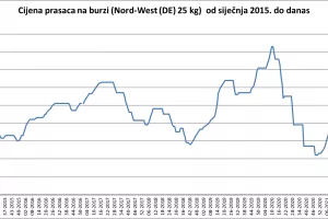 Ovo vrijeme je prilika da se spomene i pogleda kretanje cijene jedna burzovne robe s kojom se susrećemo svaki dan, a koja u ovih proteklih godinu dana bilježi jedan suprotan trend od većine ostalih burzovnih roba. Premda cijene poljoprivrednih proizvoda rastu, što dovodi do rasta cijene stočne hrane, cijena praščića je na rekordno niskim razinama. Na najreferentnijoj burzi za naše područje, cijena odojka 25 kg je trenutno 19 eura. To je najniža cijena od početka 2015. godine. Na početku pandemije, u ožujku 2020. cijena odojka bila je na rekordno visokoj razini od 83 eura, što znači da je do danas cijena pala za 77 posto! Posljedica je to prvenstveno pojave afričke svinjske kuge u Njemačkoj i posljedično zabrani izvoza svinjetine iz Njemačke u Kinu. Uslijed toga došlo je do promjene tokova kretanja roba, što su iskoristile pojedine zemlje poput Španjolske i/ili Francuske.