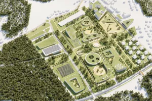 U viziji Pazina osobito se ističe megakompleks planiran u podnožju nekadašnjega kamenoloma koji je ugrađen u zapuštenu kavernu. Budući da bi spuštanjem zelenog krova taj objekt pratio konfiguraciju terena i obodne brze prometnice, bio bi gotovo nevidljiv, što je golem zaokret u odnosu na impozantne građevine koje paraju oblake. Arhitektonska skromnost i poniznost pred prirodom sušta su suprotnost vremenima kad ju se pokoravalo velikim stršećim građevinama. Uklopljenost građevina u prirodu, poput zdanja slatkovodnog akvarija Aquatika u Karlovcu, u idućim desetljećima mogla bi se sve češće viđati kao posljedica imperativa da urbani prostori ostavljaju više prostora za aktivnosti na zraku.