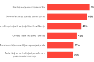 Ipak, želja za promjenom i dalje postoji. Više od polovice sudionika istraživanja tvrdi da bi razmotrili novi posao ako im se ponudi bolja prilika, a svaki treći ozbiljno razmišlja o promjeni poslodavca.