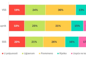U Hrvatskoj je situacija slična, pa tako 59 posto radnika doživljava posao kao izazovan i privlačan, a 41 posto pronalazi svrhu u onome što radi. Dodatno, 48 posto zaposlenih navodi da svakodnevni zadaci omogućuju primjenu njihovih vještina i kvalifikacija, a 36 posto smatra da im ti zadaci pomažu u profesionalnom razvoju.